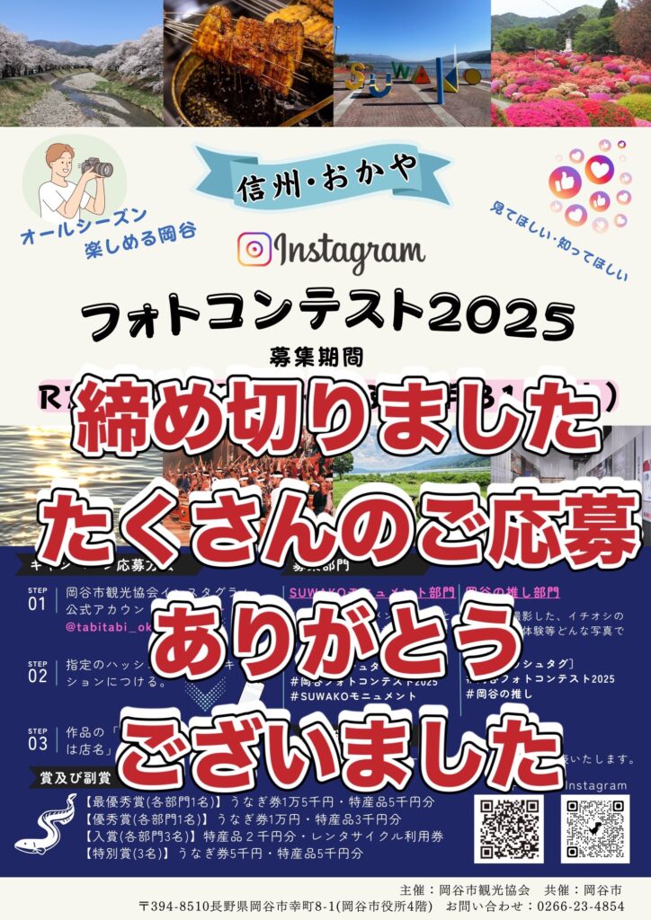 多数のご応募をいただいた「岡谷フォトコンテスト2025」、一次審査を通過した作品が各部門決定しました。