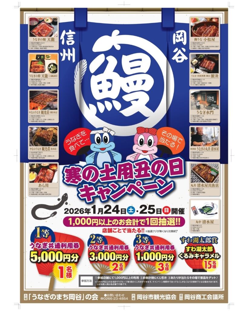 「うなぎのまち岡谷」の会では立春前にあたる1月最終の丑の日を「寒の土用丑の日」と定めており、寒の土用丑の日を盛り上げる為にキャンペーンを行います!