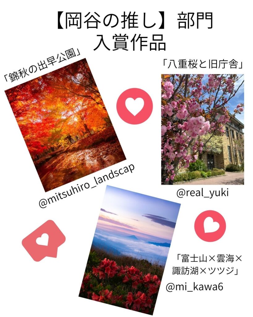 普段見慣れた景色も皆さんの写真から新しい発見や、岡谷市の魅力を再発見することが出来ました。